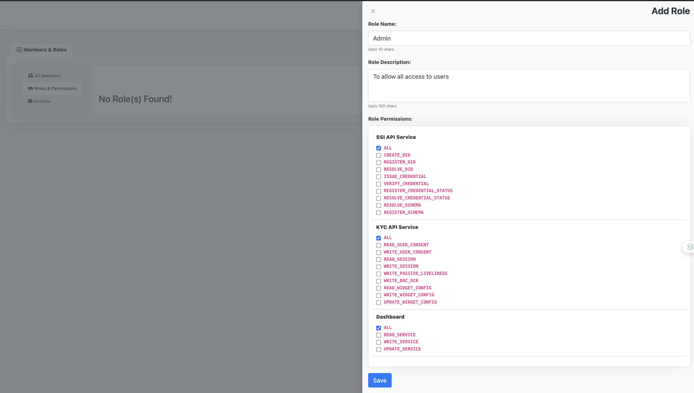 Enter relevant details about the role and click on "**Save**" button to save the role.&#x20;