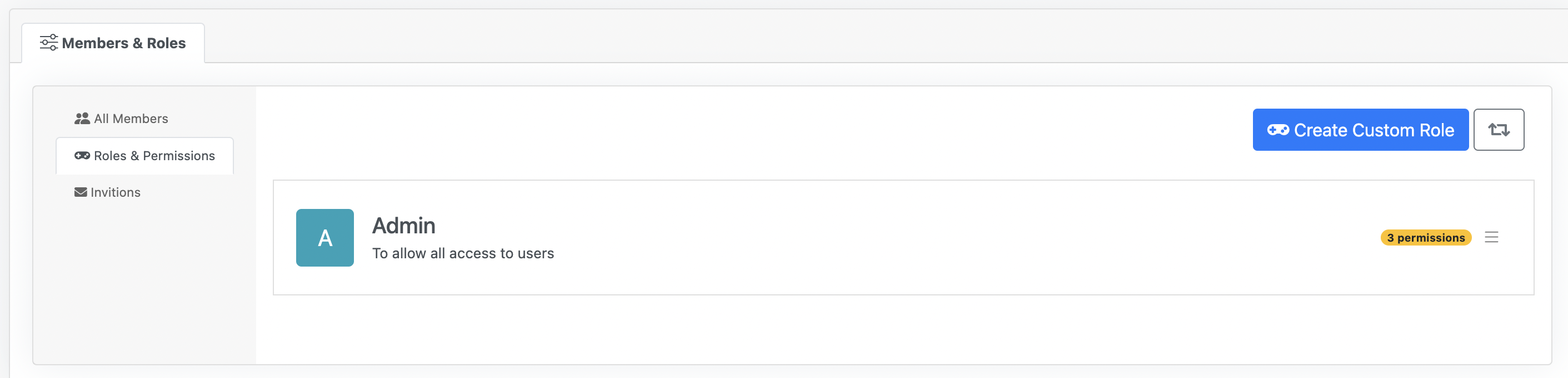 Navigate to "**Roles & Permission**" page under "**Members & Role**" tab on the "**Setting**" page. Click on "**Create Custom Role**" button to create a new role.&#x20;