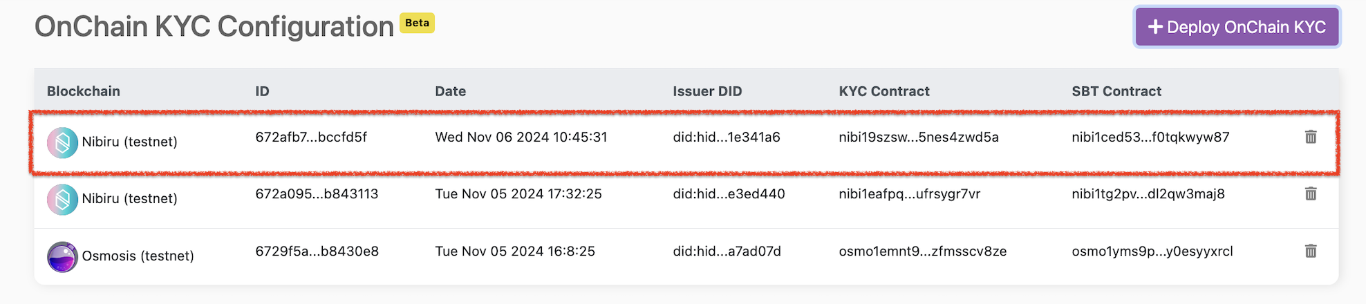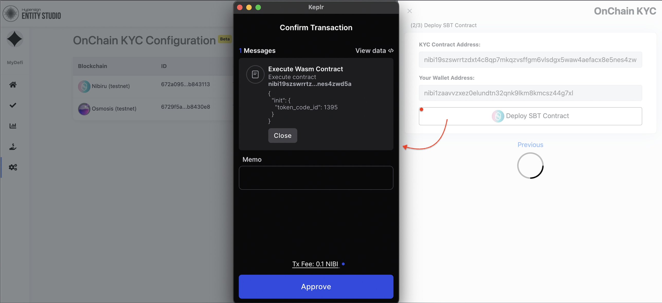 Click on **Deploy OnChain KYC** button to start the process of contract deployments.&#x20;
