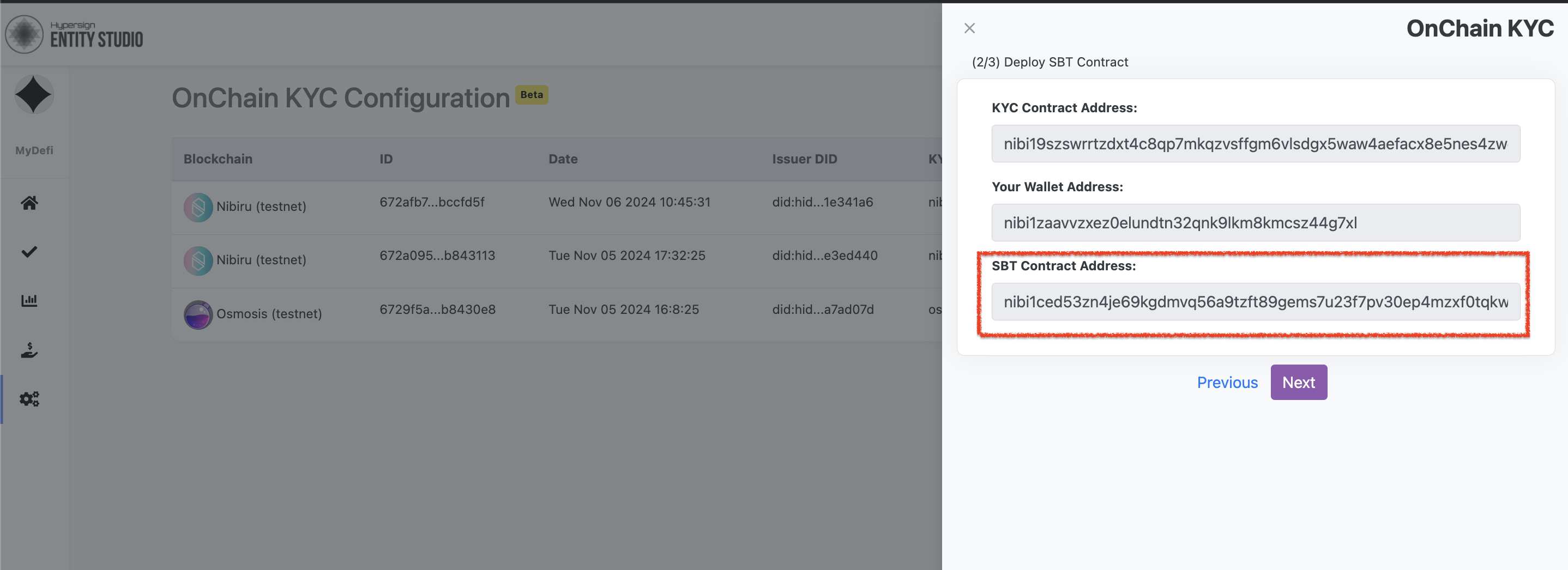 Once the transaction is successfull, you will see KYC token contract address in the slider.&#x20;