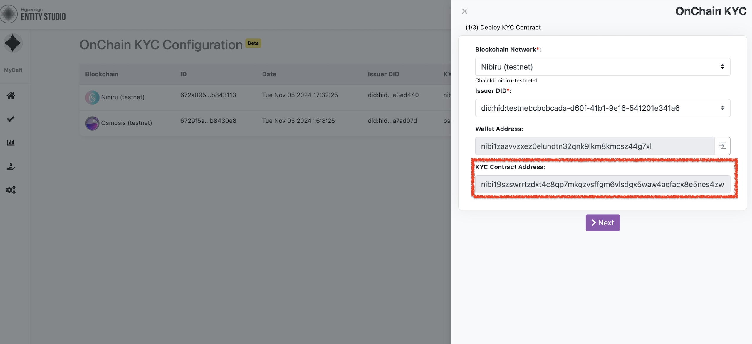 Click on "**Next**" button to deploy your KYC token contract in the next step.